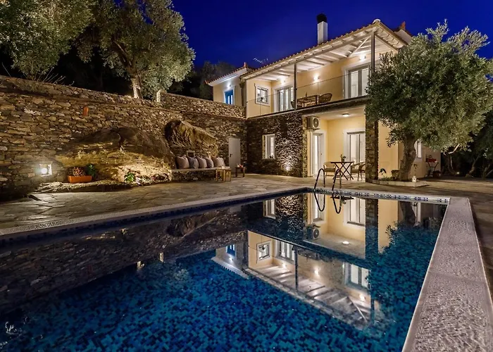 Romantic private villas in Skopelos Town offer an enchanting escape for couples seeking intimacy and tranquility amidst stunning natural surroundings. These charming retreats are often nestled within lush landscapes, providing breathtaking views of the sparkling Aegean Sea and vibrant greenery. With their rustic architectural style and cozy interiors, each villa creates a warm and inviting ambiance, perfect for romantic getaways. Guests can enjoy private outdoor spaces ideal for candlelit dinners or quiet mornings, while the serene atmosphere encourages moments of connection and relaxation. Whether it's watching the sunset from a terrace or exploring nearby hidden beaches, these villas serve as a perfect backdrop for memorable romantic experiences.